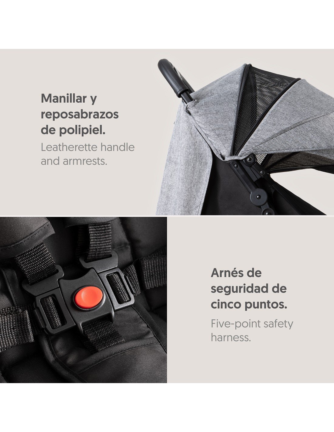 La poussette Interbaby Minimum Space est conçue pour faciliter la vie quotidienne des parents tout en garantissant la sécurité de votre enfant. Elle est équipée d’une ceinture de sécurité à 5 points et d’un mécanisme de verrouillage double pour empêcher tout repliement involontaire de la poussette. De plus, elle est livrée avec une capuche noire et vous avez le choix entre une seconde capuche de couleur grise ou beige