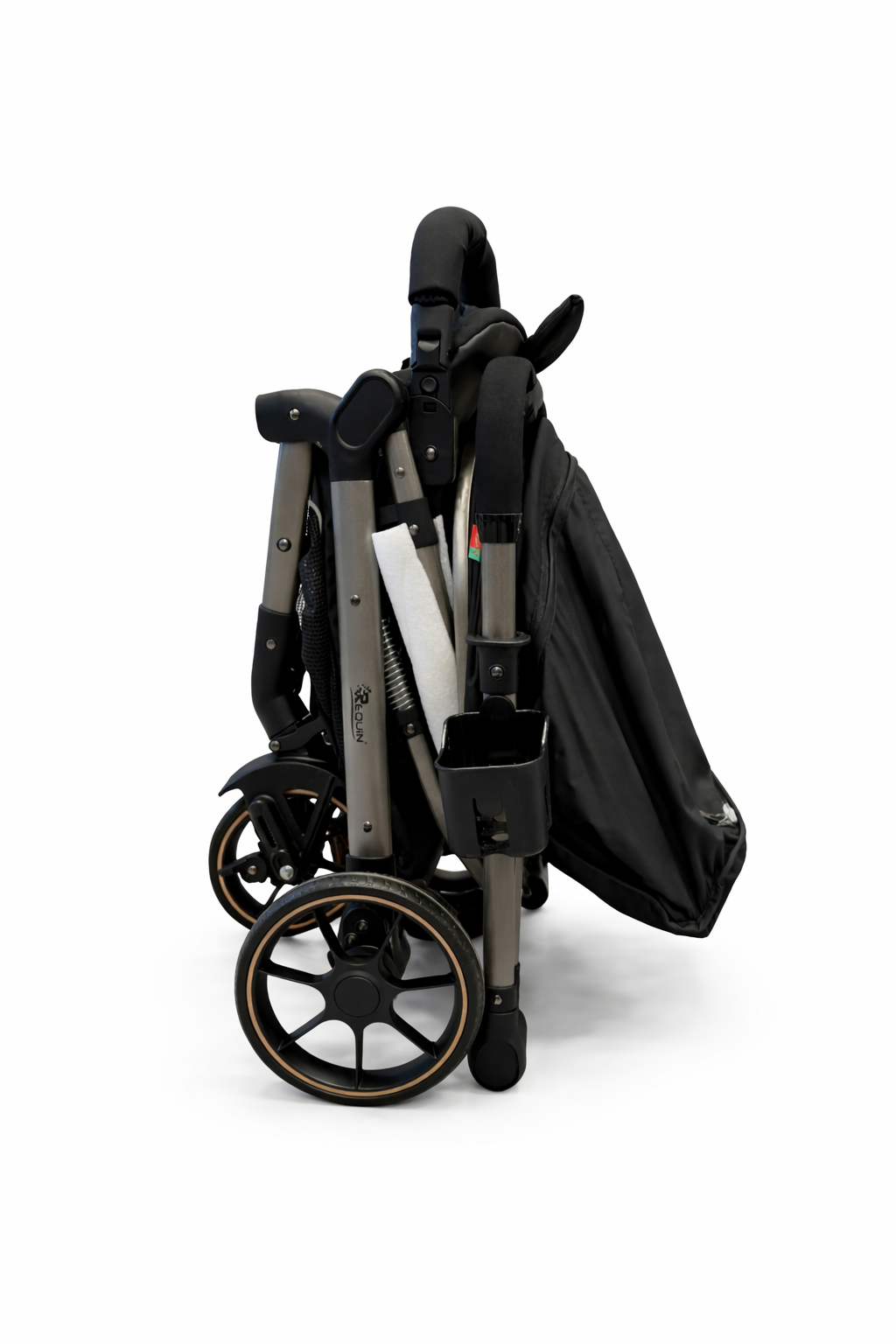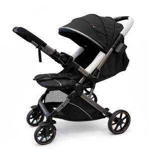 La poussette dispose également d’un siège confortable et inclinable, d’un grand canopy protecteur, ainsi que d’un panier de rangement spacieux pour transporter tous les essentiels de bébé.