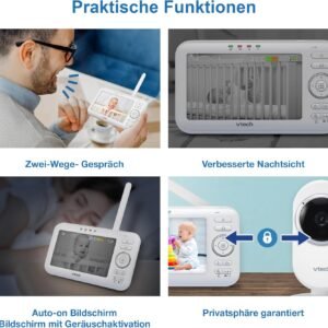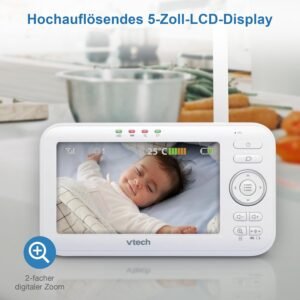 Le VTech VM5252 est la solution idéale pour surveiller bébé en toute sécurité tout en gardant l’esprit tranquille, à la maison comme pendant la nuit.